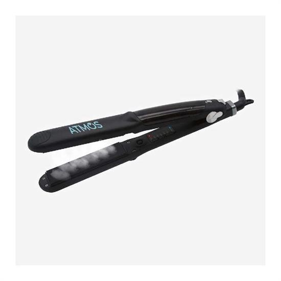 La piastra a vapore ATMOS è dotata di placche ioniche in ceramica e tormaline e di 6 differenti impostazioni di temperatura (da 150°c a 235°C).